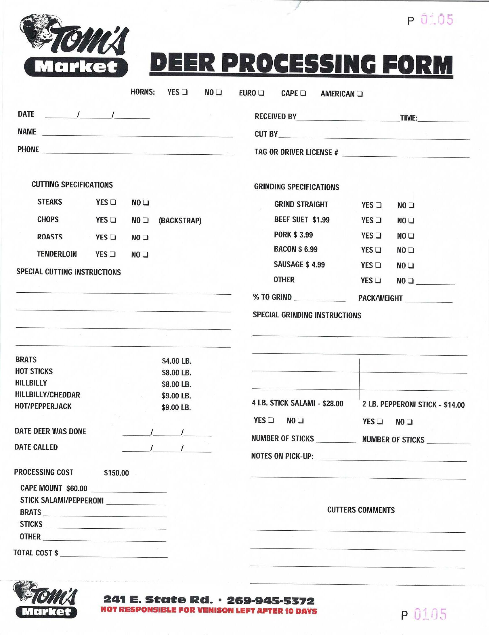 Looking for a local place to process your latest harvest? Tom's Meat Market offers deer processing for hunters and outdoor enthusiasts at our Middleville, MI location. Whether you've just brought in your latest kill or want to get your venison processed into delicious smoked deer products, we've got you covered. We take pride in our fast, efficient and quality processing so that you can enjoy your venison without the long wait.